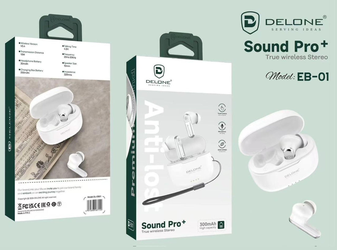 Delone Sound Pro+ True Wireless Earbuds | Bluetooth Stereo | Touch Control | Model EB-01